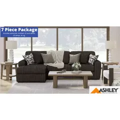 Package includes the Midnight Chocolate sectional, tables, lamps, and rug. Tables, lamps, and rug options may vary depending on location and availability.